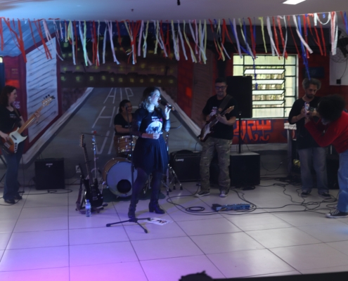 Danger Zone: A banda que nasceu no palco Arteculando, tá estruturada e com um pop rock mais eclético. E o melhor, tem conseguindo arrastar o público da Escola Tech Art Musical por onde tocam.