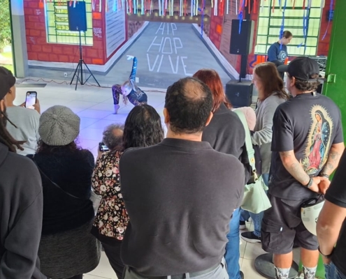 As músicas foram intercaladas com um bate-papo informal de Alexandre Cuba com o oficineiro Kiabo, que falou um pouco mais da sua trajetória no grafite, a importância de seu contexto histórico e cultural, a conexão com as artes visuais e o movimento hip-hop. O dia 27/03 é considerado o Dia mundial do Grafite, então a data foi mais do que apropriada para esta celebração.